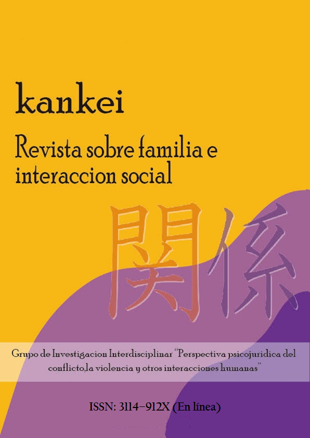 KANKEI, Revista sobre familia e interacción social, es una publicación del Grupo KANKEI, fruto del interés científico del Grupo de Investigación Interdisciplinar “Perspectiva psicojurídica del conflicto, la violencia y otras interacciones humanas”, con sede en la ciudad Bogotá, D.C. (Colombia). La Revista KANKEI, no tiene un amplio espectro temático, pero sí variedad teórico-conceptual y metodológico-investigativa, haciendo énfasis en las reflexiones, descripciones y explicaciones sobre la interacción social, especialmente las que se dan en el núcleo familiar, sin desconocer que el individuo en sí mismo es una especie de sistema complejo que vive en interacción con contextos cercanos y lejanos, sobre los cuales influye, es retroalimentado y recibe influencia.